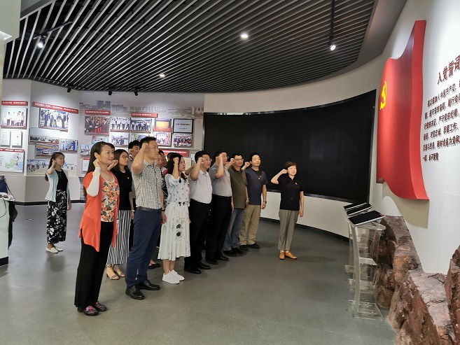 6月21日上午,大家参观了青岛市第二大博物馆——大沽河博物馆,实地感受了胶州历史之沧桑,品味了胶州文化之风韵。在大沽河博物馆胶州党史馆内,全体党员在宋浩副部长的带领下,面向庄严的党旗,郑重举起右拳,重温了入党誓词,更加坚定了初心、记牢了使命。