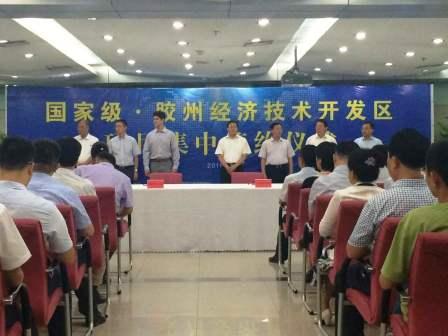 8月30日,国家级胶州经济技术开发区项目集中签约仪式在新城区胶州市级机关办公大楼一楼西会议室举行。胶州市委书记孙永红,市委副书记、市长张友玉,胶州经济技术开发区常务副主任宋业敏,市领导赵发海、李宝帅等出席此次活动。