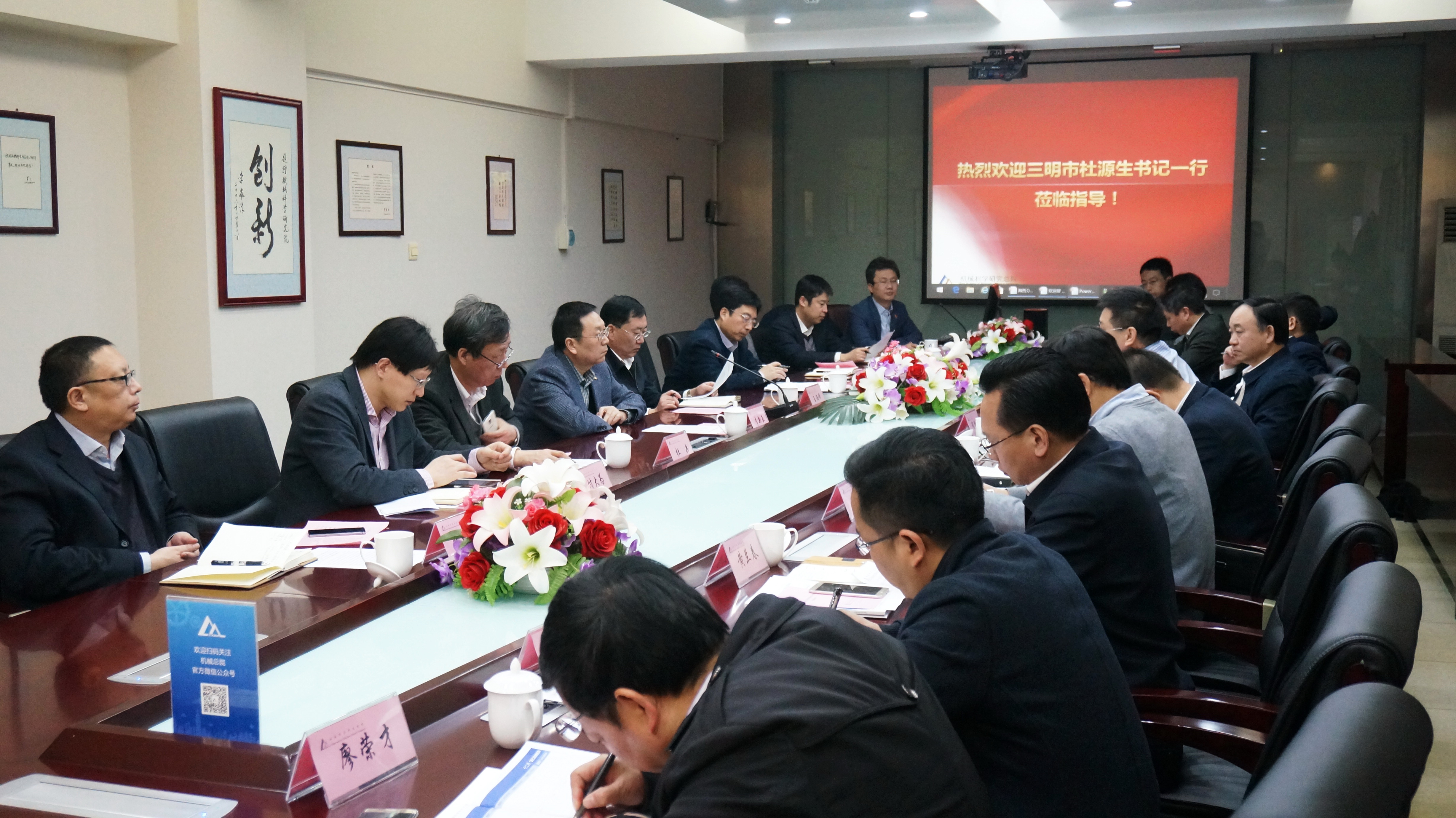 12月15日上午,福建省三明市委书记杜源生、副市长程鹏鹰一行14人到访机械总院,机械总院副院长王西峰、原院长李新亚热情接待了来访客人并进行了座谈交流。三明市委副秘书长温欣传、市经信委主任王立文、市国资委主任吴擢祥、中共沙县县委书记杨兴忠、中共将乐县委书记刘润宇等领导参加座谈。